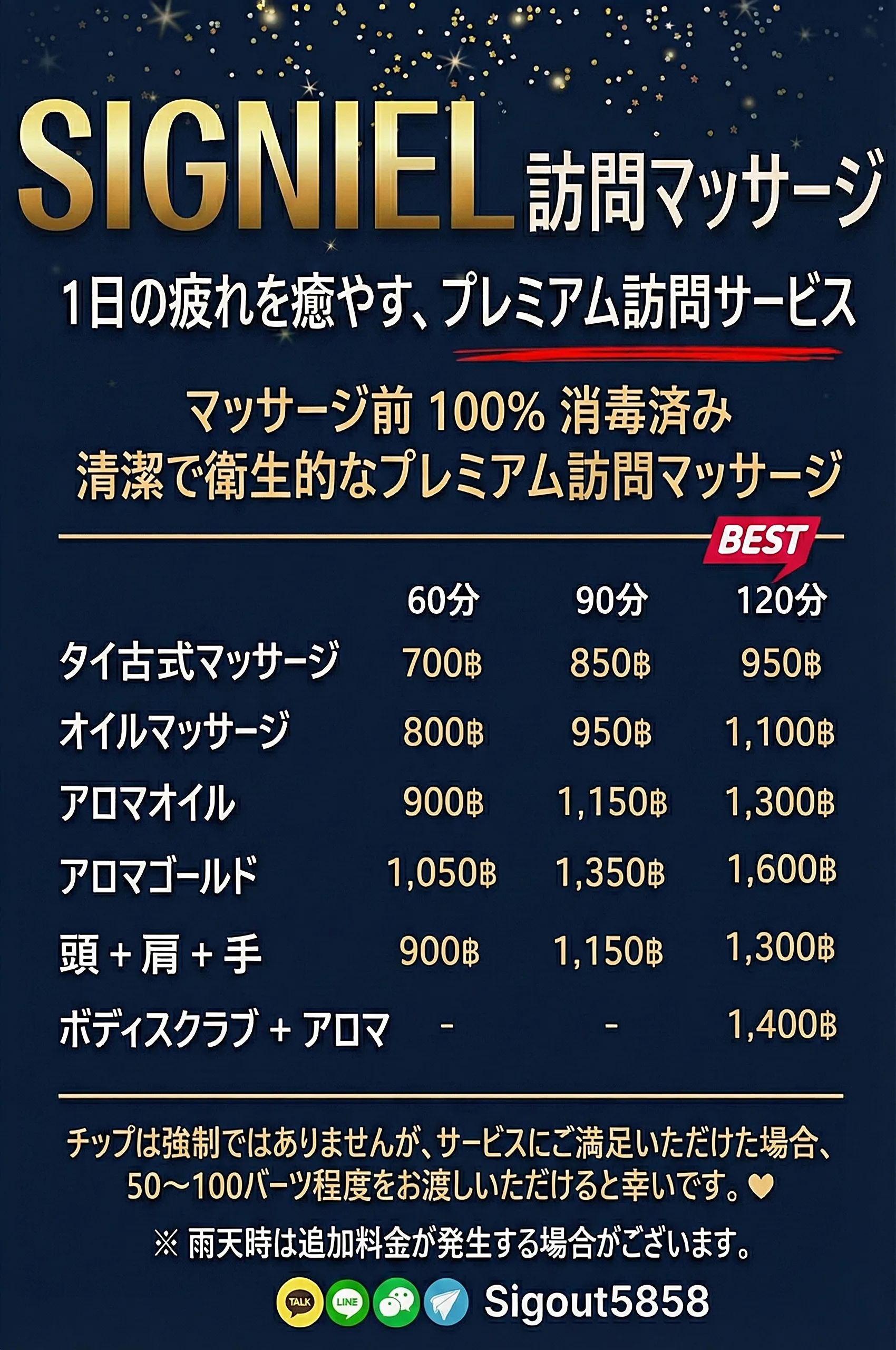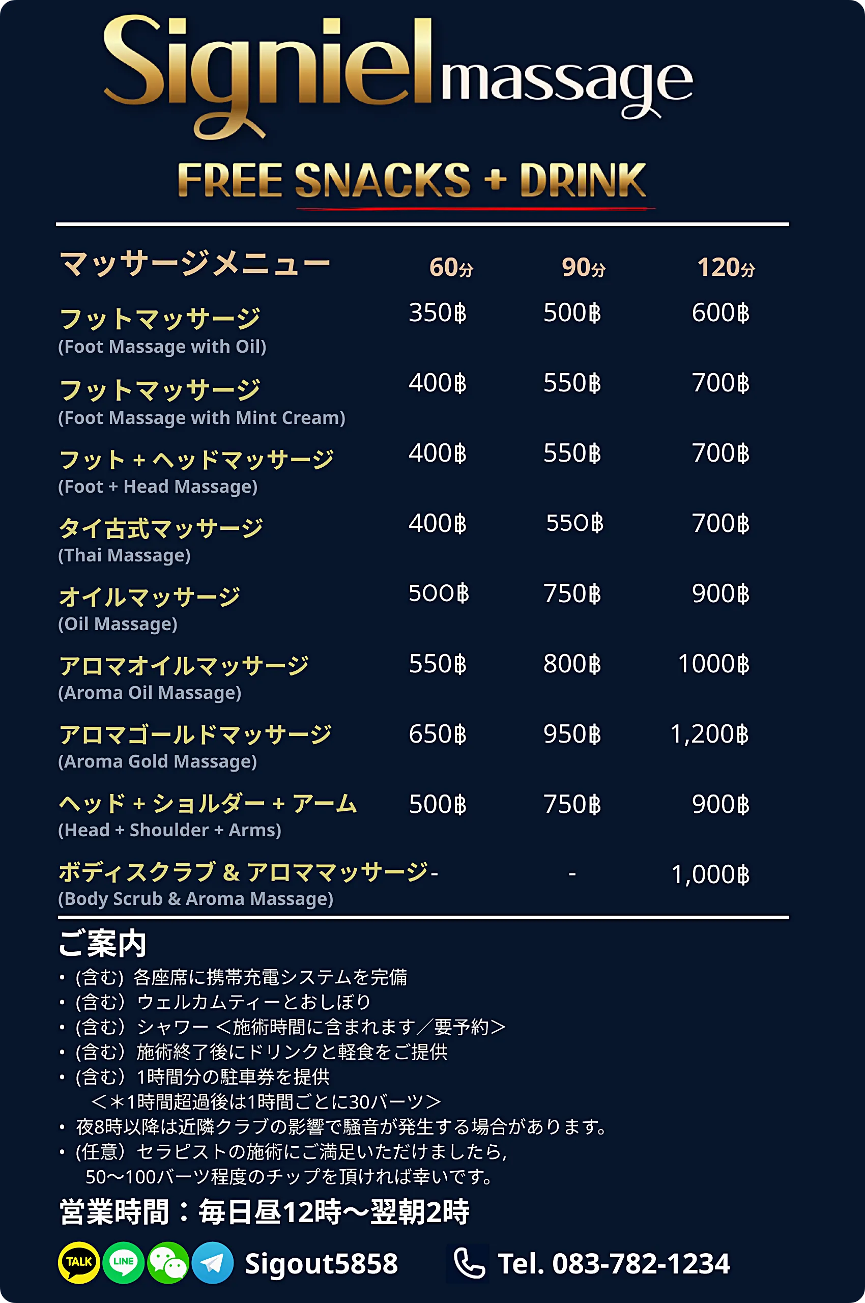マッサージメニュー
